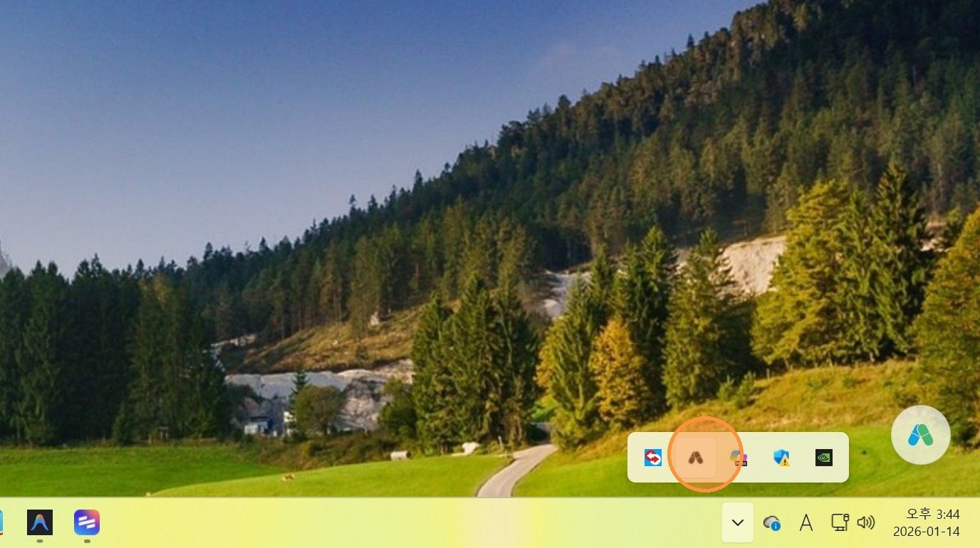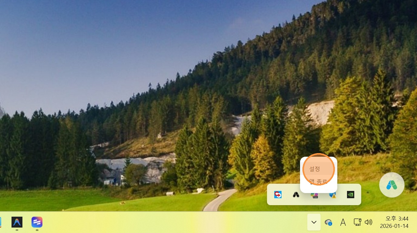Section titled “1. ‘알닥’ 트레이 아이콘을 찾기 위해 화면 오른쪽 하단의 화살표를 클릭합니다.”