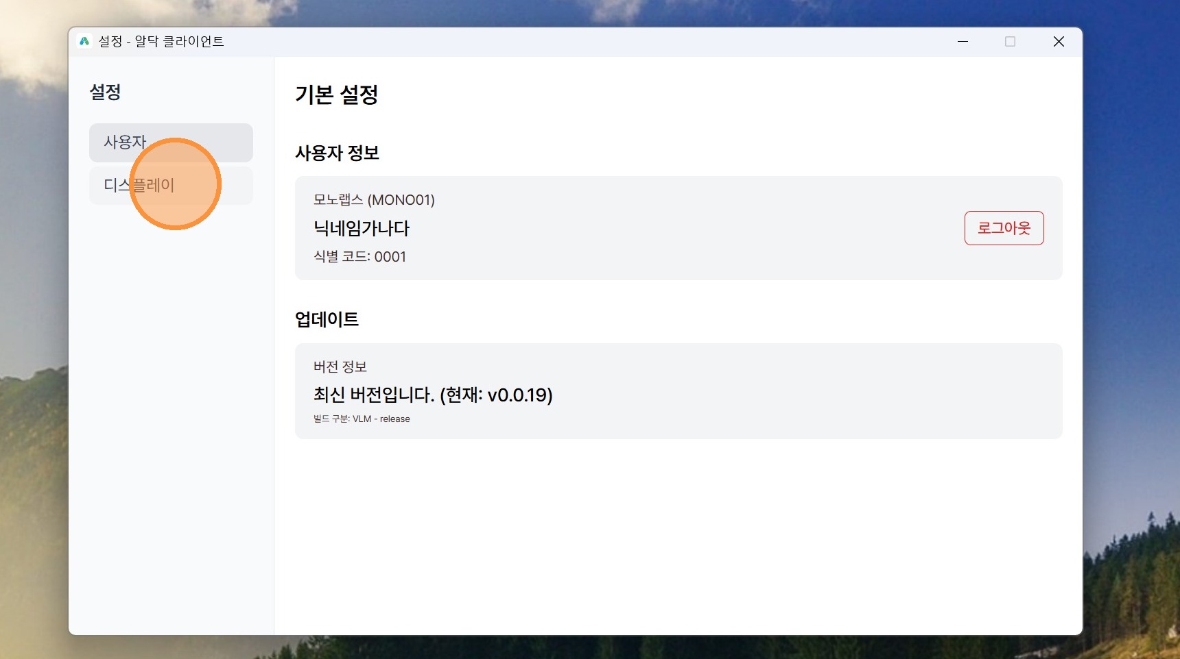 Section titled “4. 좌측 사이드바에서 ‘디스플레이’ 클릭”